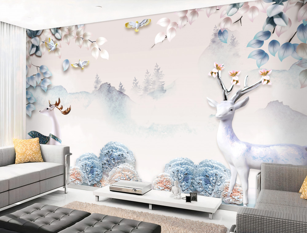 Tapet Fototapet căprioarele merg în ceață deasă (articol pb1115 ) din categoria Fototapet 3D