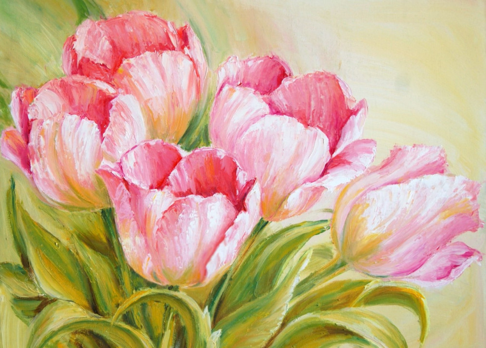 Tapet Fototapet lalele roz pictate (articol a92368 ) din categoria Fototapet Flori