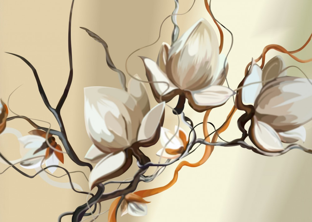 Tapet Fototapet ramuri de magnolie albă înflorită (articol a92326 ) din categoria Fototapet Flori 3D