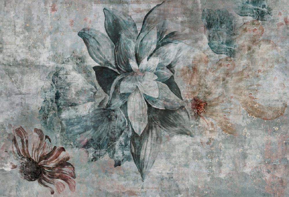 Tapet Fototapet flori pe peretele de ciment (articol a93782 ) din categoria Fototapet Flori 3D