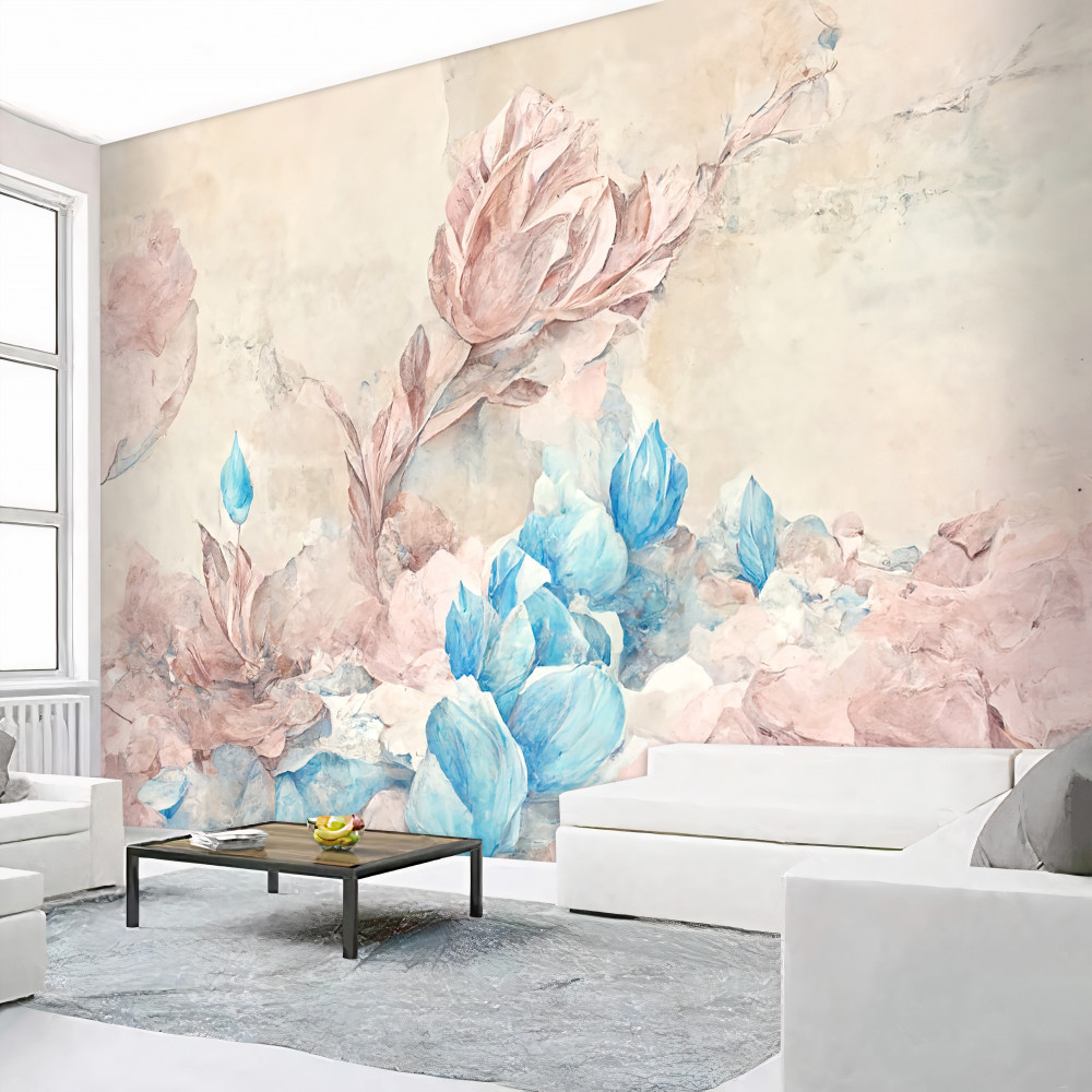 Tapet Fototapet flori roz cu petale albastre (articol a88296 ) din categoria Fototapet Flori