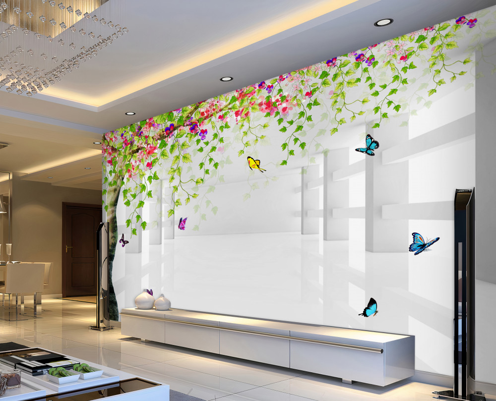Tapet Fototapet fluturi pe un copac înflorit pe hol (articol a91805 ) din categoria Fototapet tunel 3D