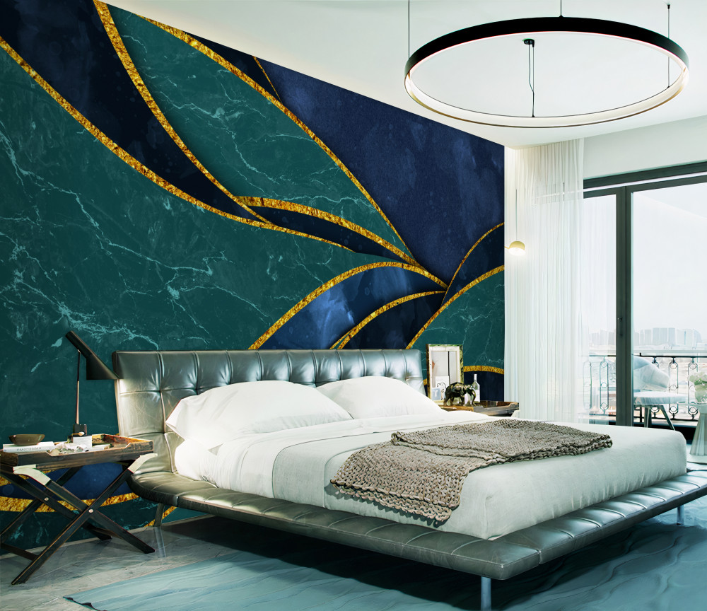 Tapet Fototapet linii netede de smarald pe un fundal albastru (articol a88382 ) din categoria Fototapet Art