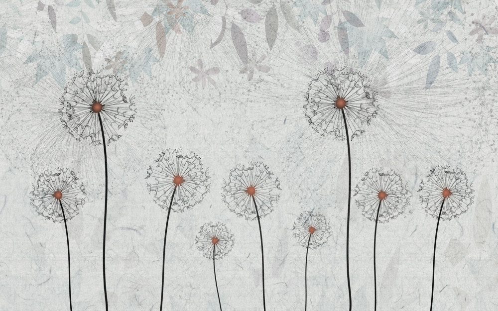 Tapet Fototapet păpădii zvelte pe un fundal gri (articol a89208 ) din categoria Fototapet Păpădii