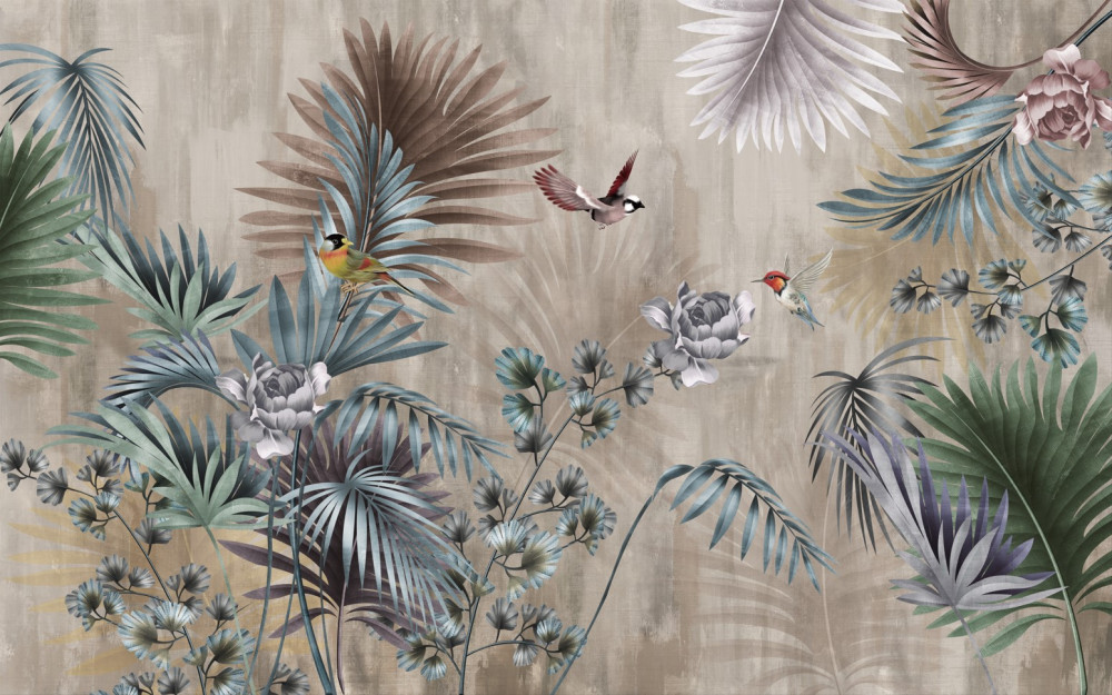 Tapet Fototapet păsări printre verdeața tropicală (articol a93744 ) din categoria Fototapet 3D