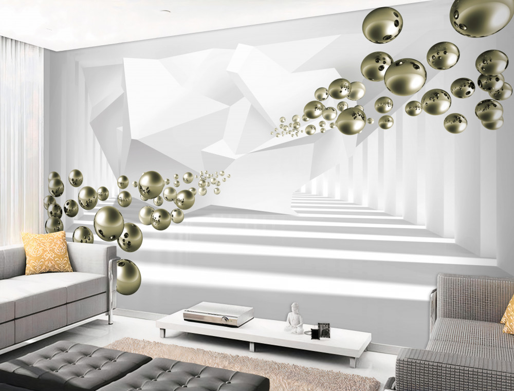 Tapet Fototapet perle de aur care zboară într-o abstracție de tunel (articol a90911 ) din categoria Fototapet tunel 3D