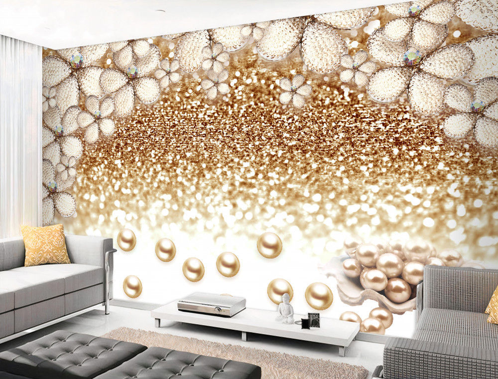 Tapet Fototapet perle și flori de aur alb (articol pb10016 ) din categoria Fototapet 3D