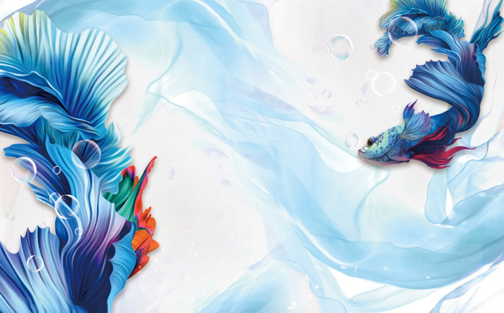 Tapet Fototapet pește cu coadă albastră în apă (articol pb1111 ) din categoria Fototapet 3D