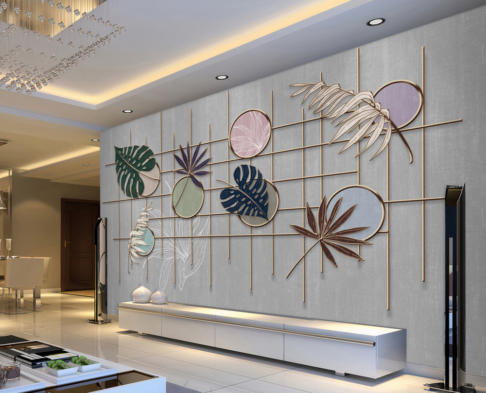Tapet Fototapet frunze de plante tropicale pe plasă aurie (articol a90428 ) din categoria Fototapet Popular