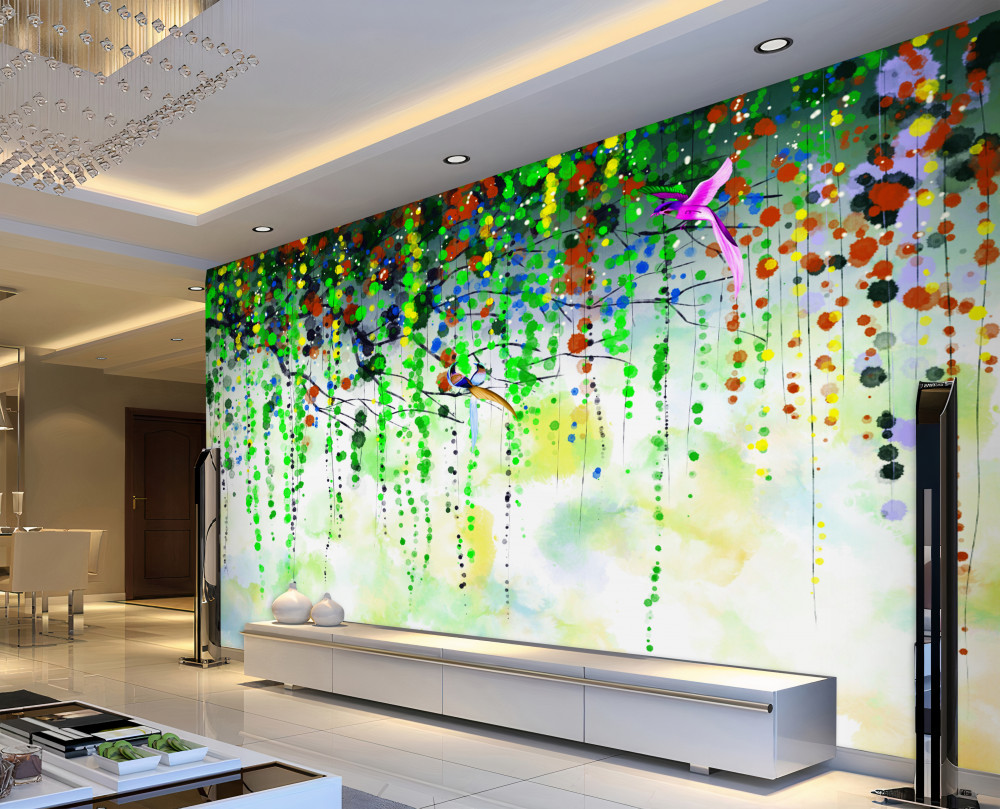 Tapet Fototapet flori strălucitoare care atârnă în jos (articol a92107 ) din categoria Fototapet Acuarelă