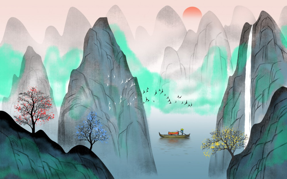 Tapet Fototapet munți abstracti la apus (articol a91977 ) din categoria Fototapet Acuarelă
