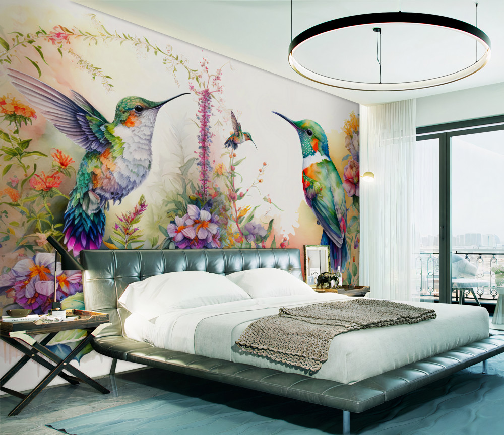 Tapet Fototapet colibrii comunică în flori (articol a89234 ) din categoria Fototapet Animale