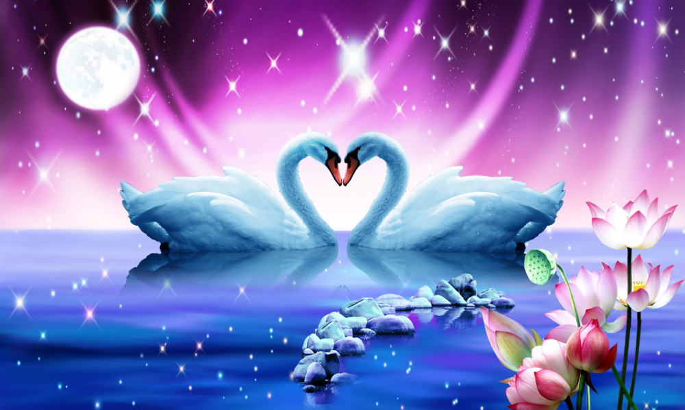Fototapet Lebedele îndrăgostite formează o inimă