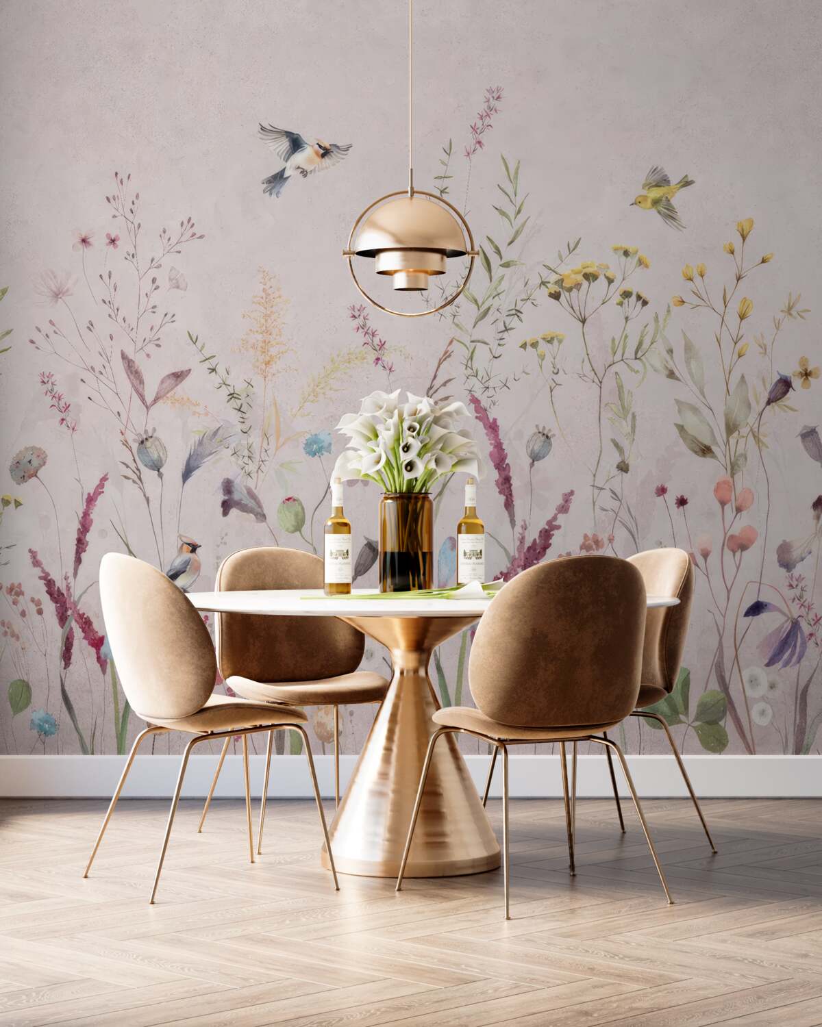 Fototapet Fundal floral cu păsări