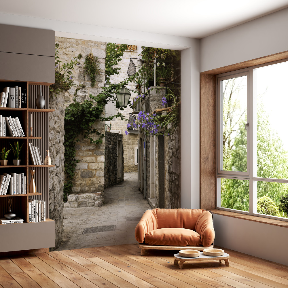 Fototapet flori proaspete pe strada veche