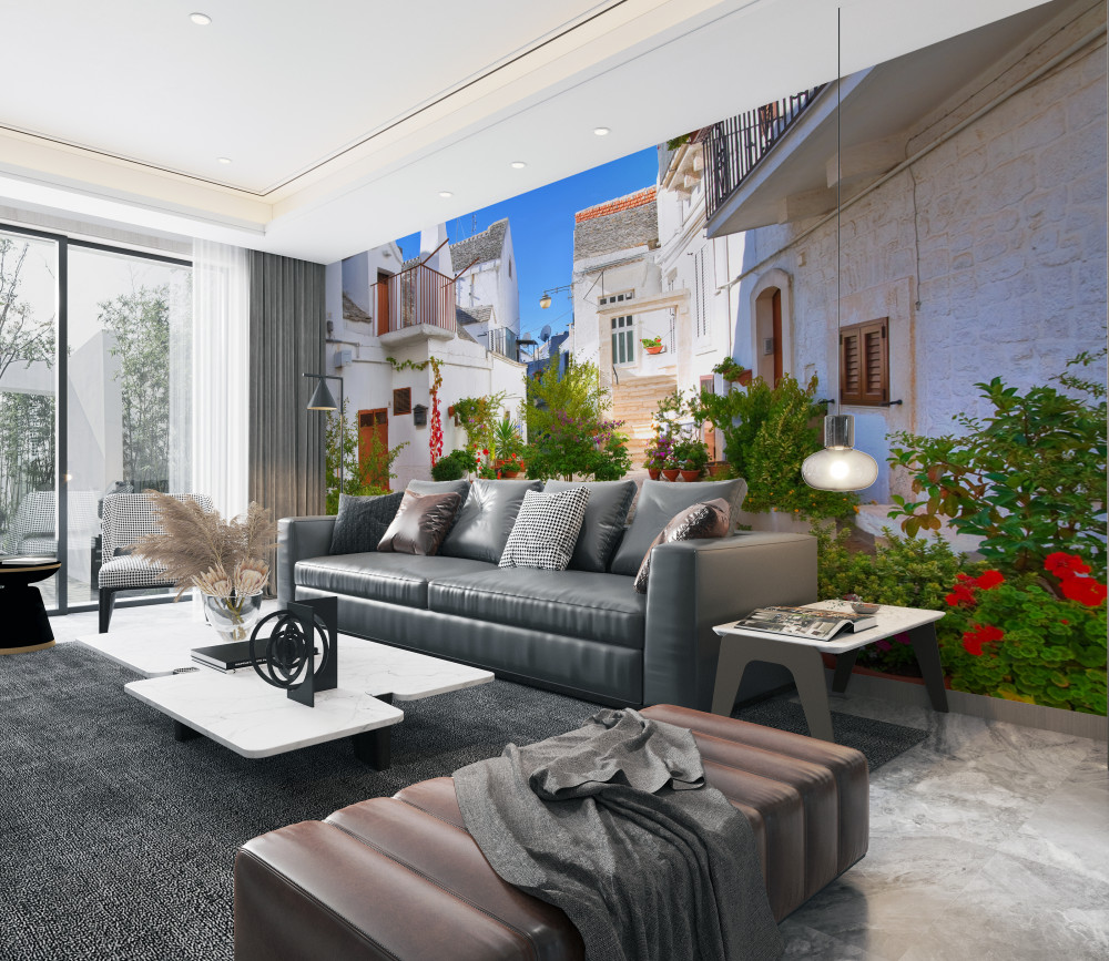 Tapet Fototapet străzi verzi din santorini (articol a89639 ) din categoria Fototapet Străzi