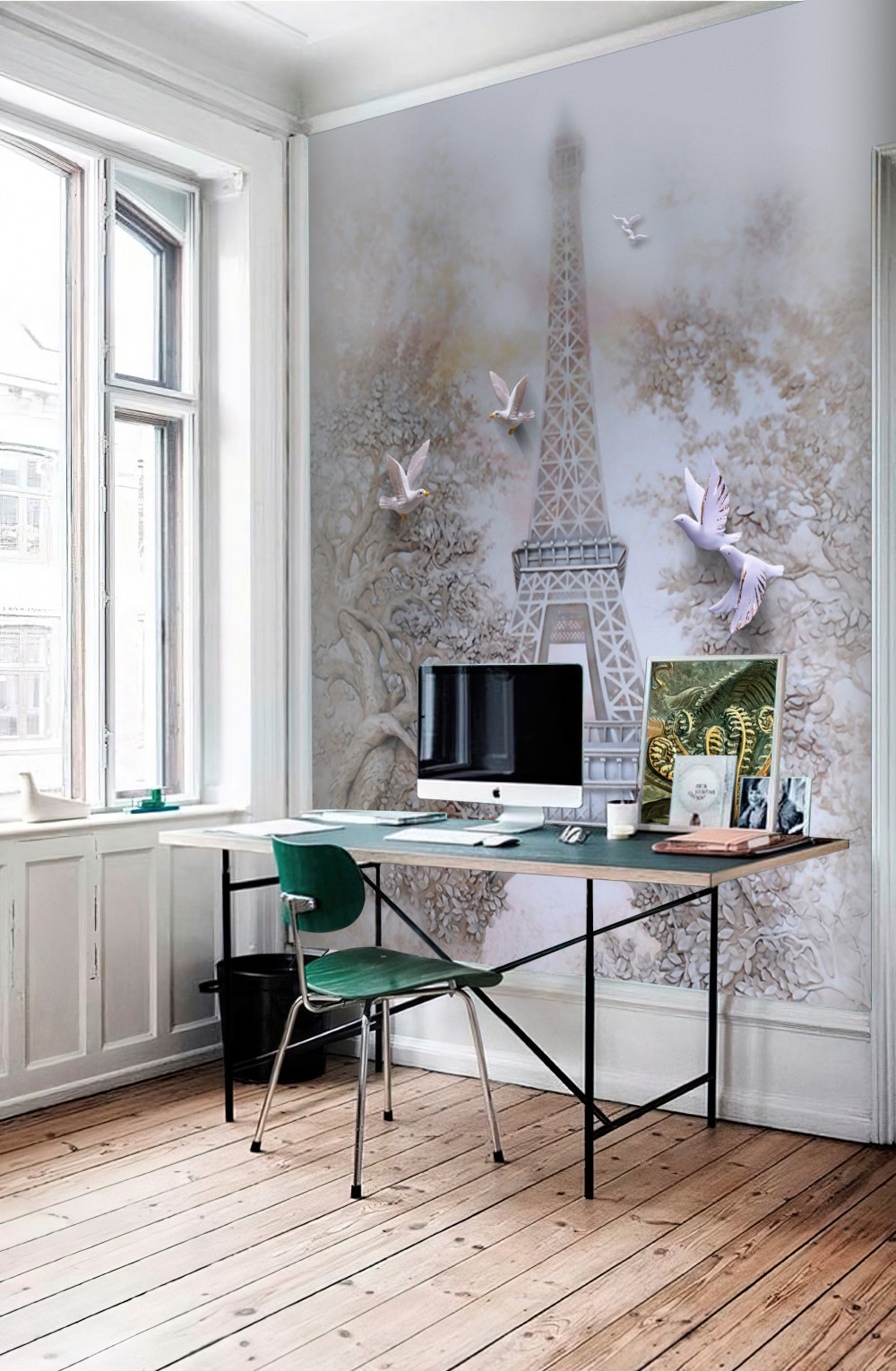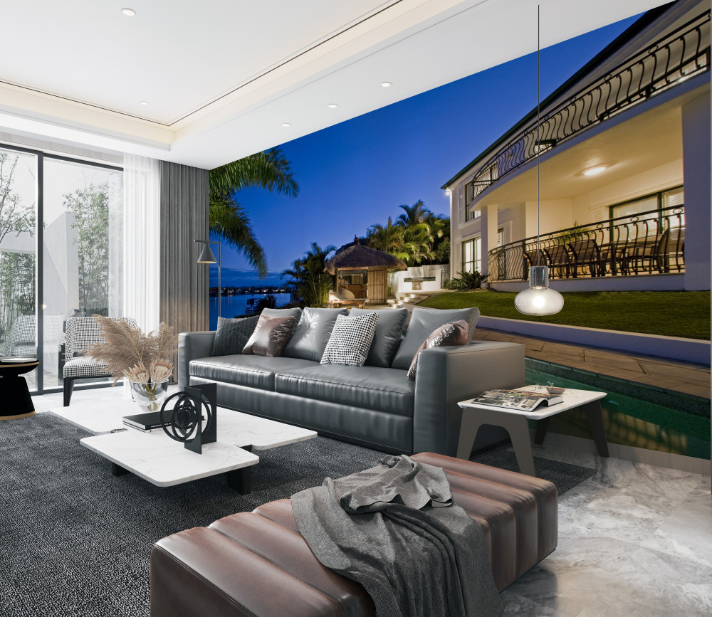 Fototapet perle rotunde plutitoare într-o casă cenușie