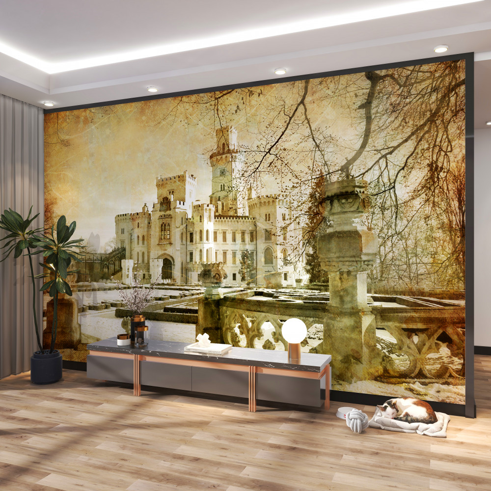 Fototapet balcon cu arcade cu vedere la apa si munti