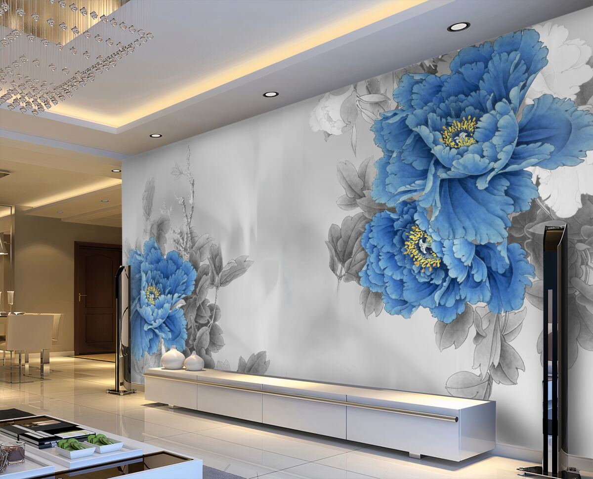 Tapet Fototapet Flori albastre pe fond gri (articol a98812 ) din categoria Fototapet Flori