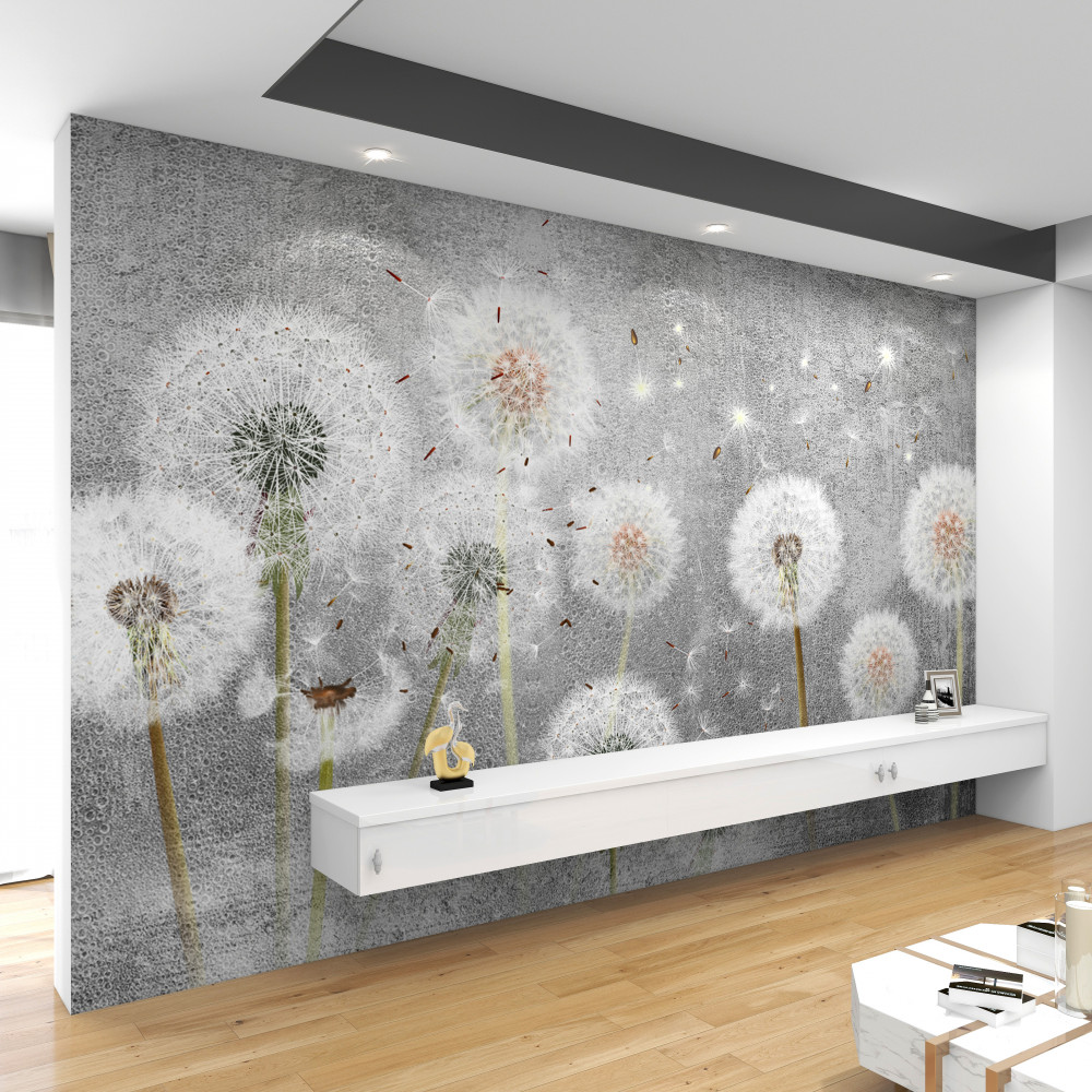 Fototapet capete mari de păpădie pe un zid de cărămidă