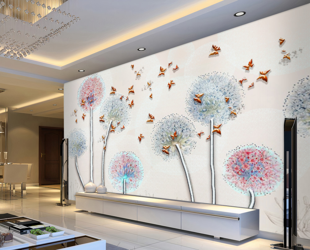 Fototapet fluturi zboară deasupra unui câmp de păpădii