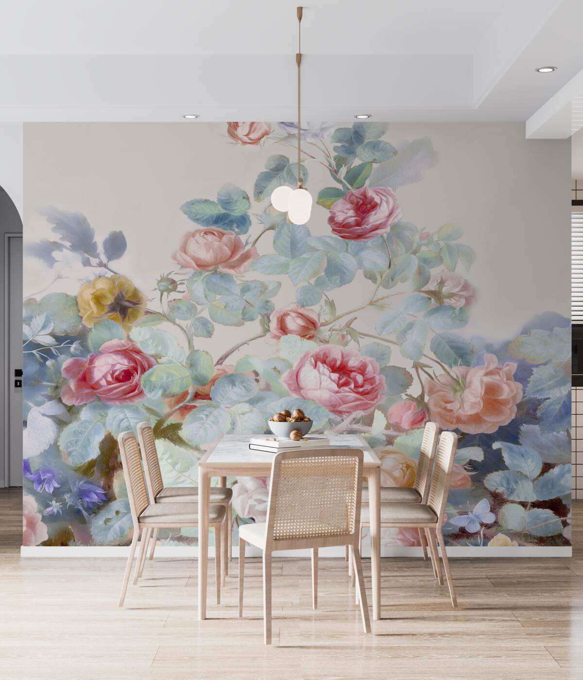 Fototapet Trandafiri delicat alb și roz pe un fundal ușor