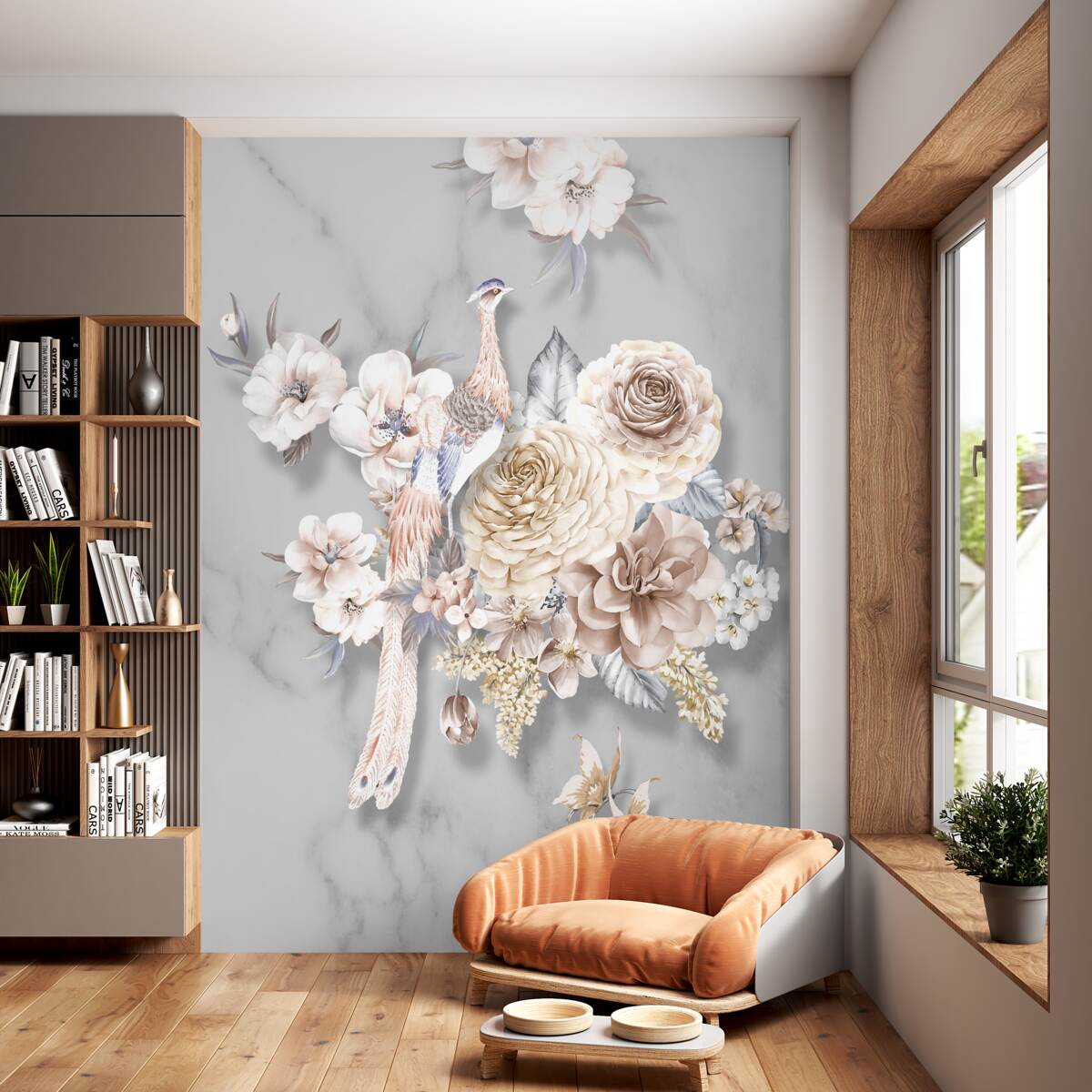 Fototapet Wallpapet Ramuri Blânde de Flori și PĂSĂ