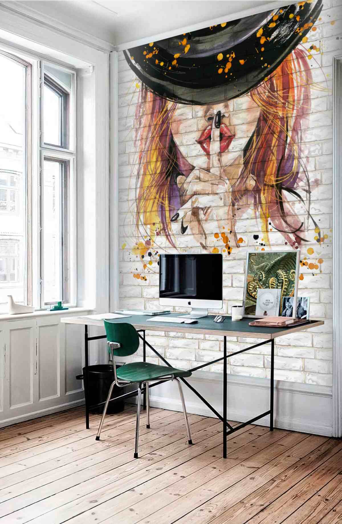 Fototapet Fata cu pălărie își duce degetul la buze