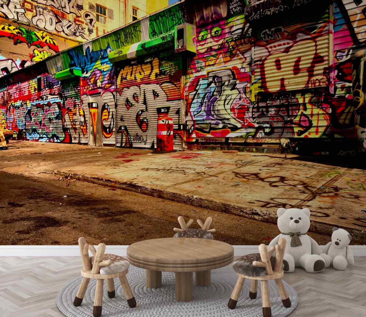 Tapet Fototapet Case de pe stradă pictate cu graffiti (articol a97265 ) din categoria Fototapet Graffiti
