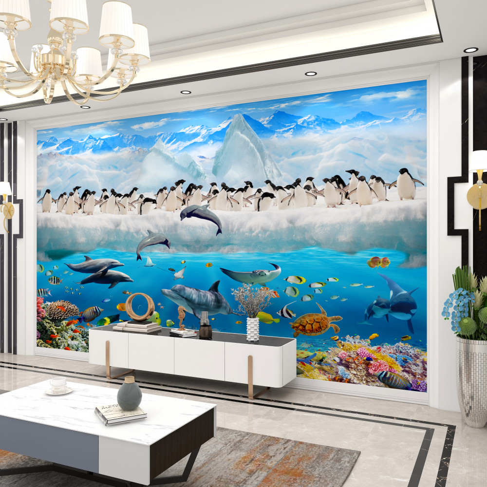 Tapet Fototapet pinguini și delfini în recifele de corali (articol a90421 ) din categoria Fototapet pentru copii
