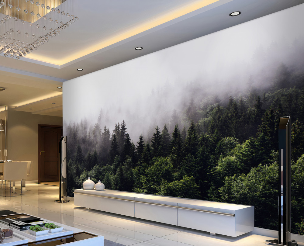 Fototapet pădure incredibilă și munți în reflexia apei cristaline