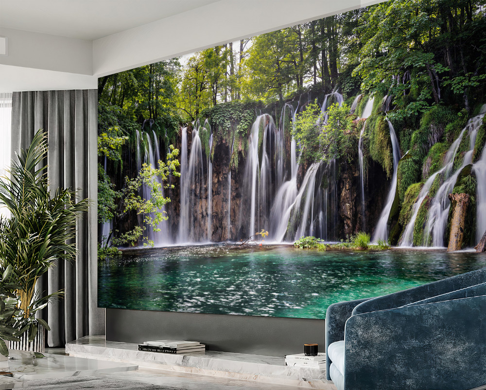 Fototapet căderea cascadelor în lacul de cristal