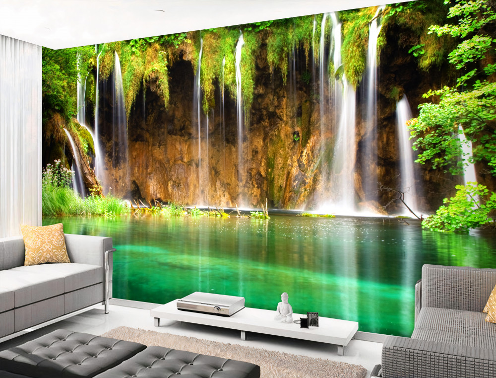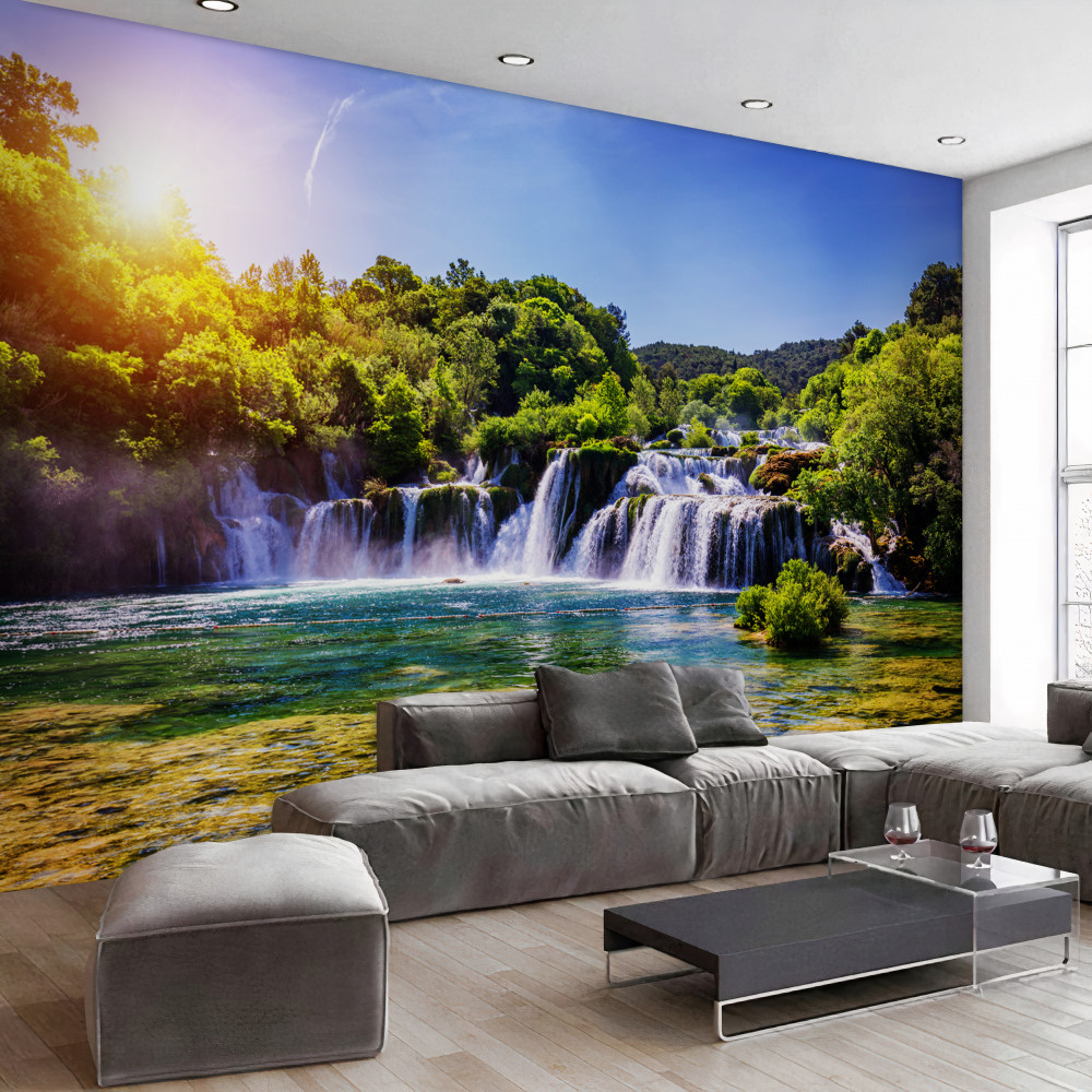 Fototapet natură fabuloasă în jurul cascadei și a lacului