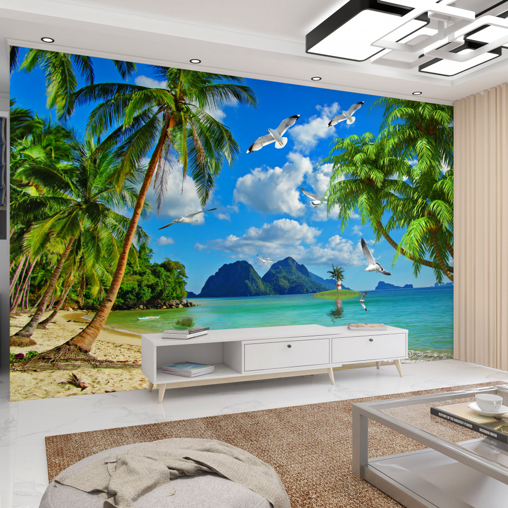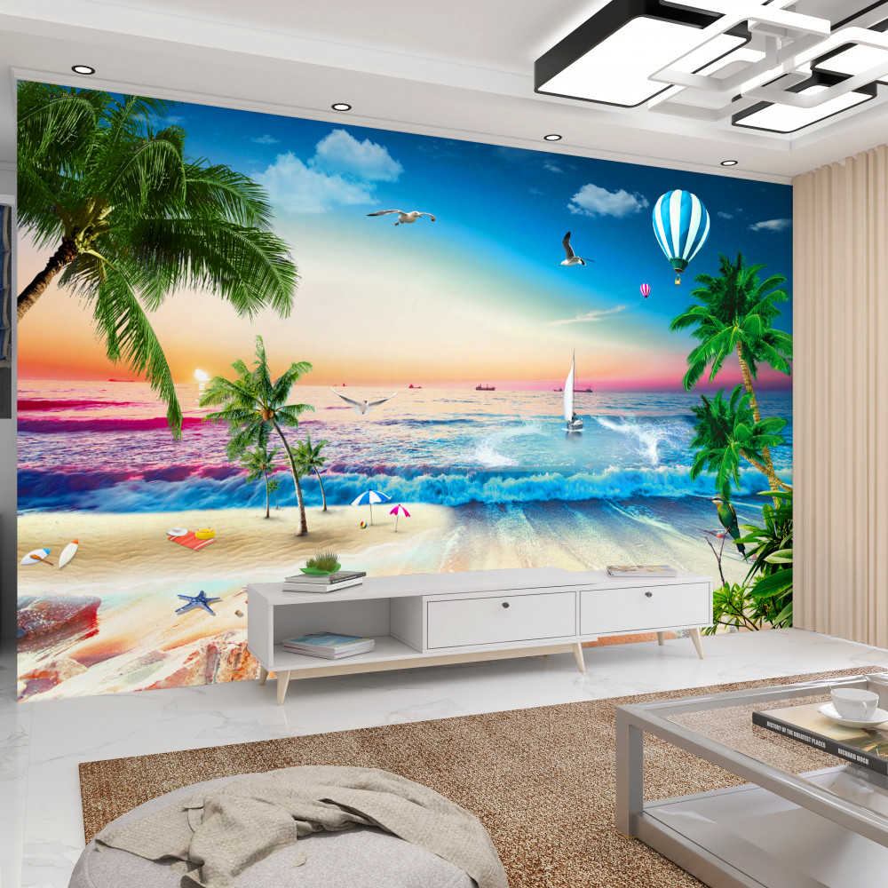 Fototapet bărci la debarcaderul de pe malul nisipos