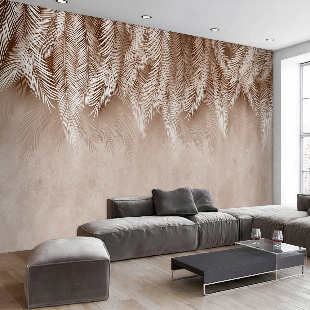 Fototapet frunze de palmier pufoase în nuanțe de toamnă