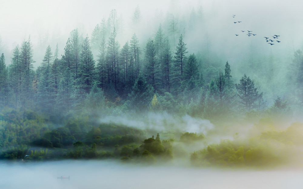 Tapet Fototapet liniște frumoasă a pădurii cețoase (articol a90371 ) din categoria Fototapet Natura