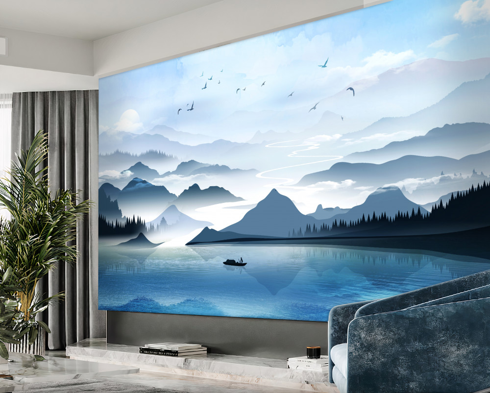Fototapet Fotipet munții într -o acuarelă ceață mâine