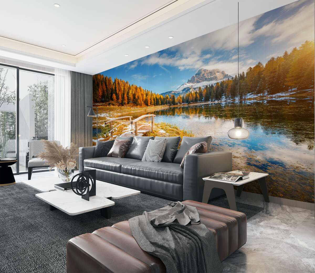 Fototapet pădure incredibilă și munți în reflexia apei cristaline