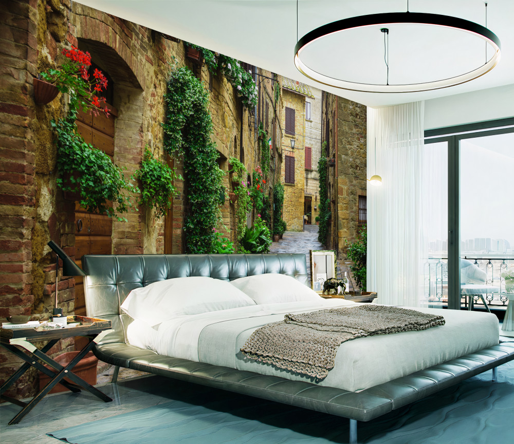 Tapet Fototapet stradă veche de piatră în plante verzi (articol a92773 ) din categoria Fototapet Străzi
