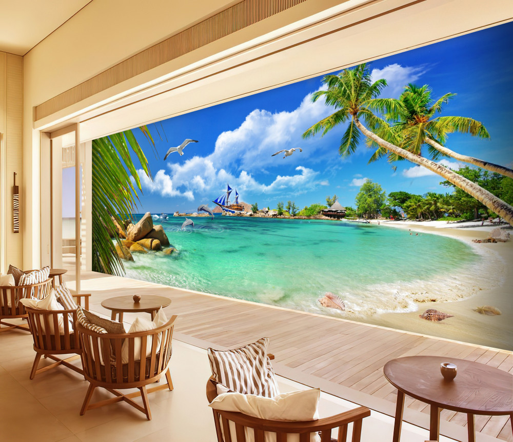 Fototapet Fereastră cu vedere la stânci și la apele liniștite ale mării