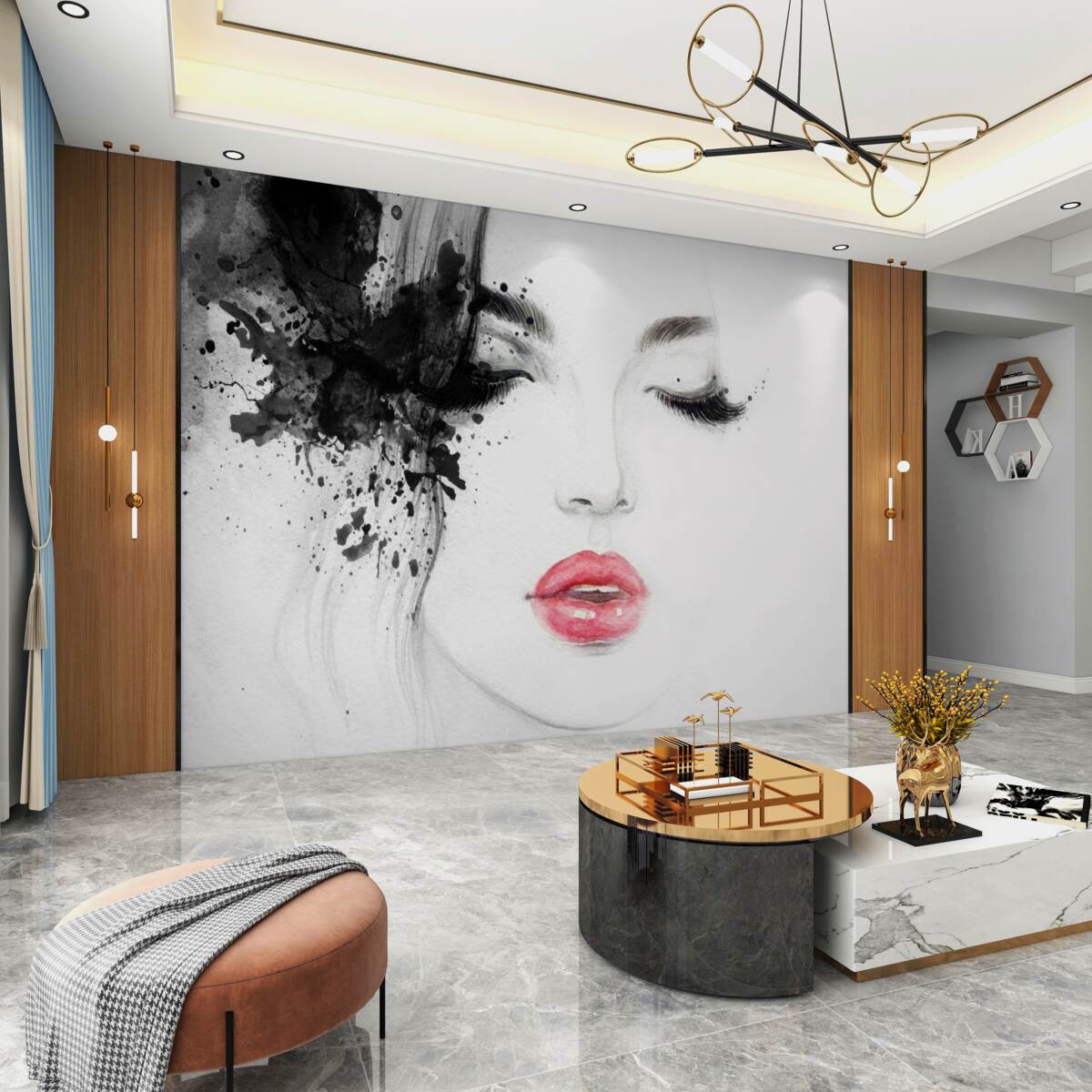 Tapet Fototapet Fată desenată cu ochii închiși și buze roșii (articol a97574 ) din categoria Fototapet Oameni