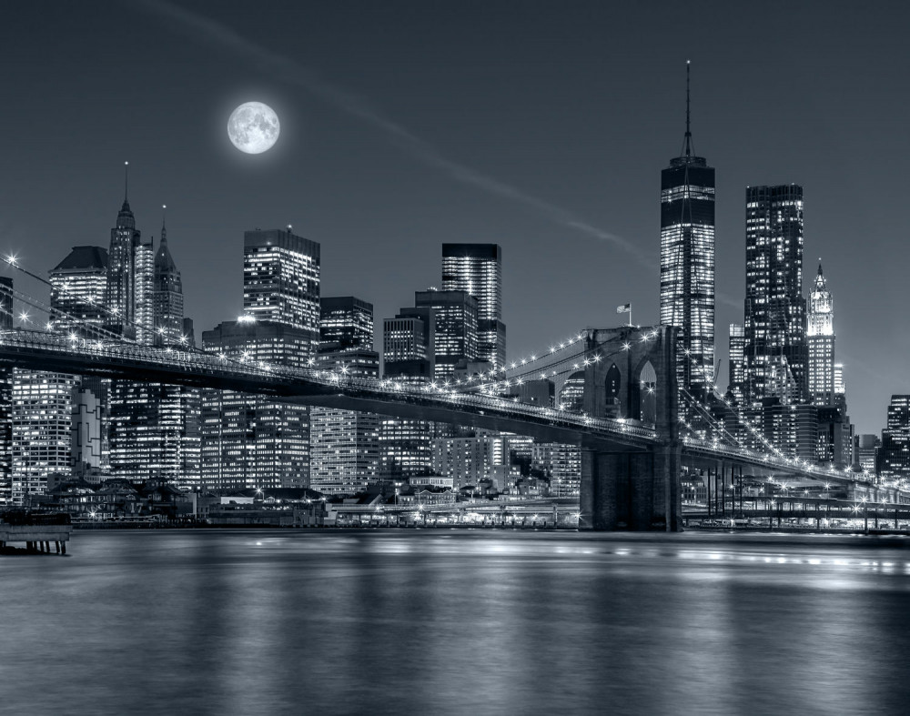 Tapet Fototapet lună plină peste new york alb-negru (articol a89494 ) din categoria Fototapet Orașe și țări