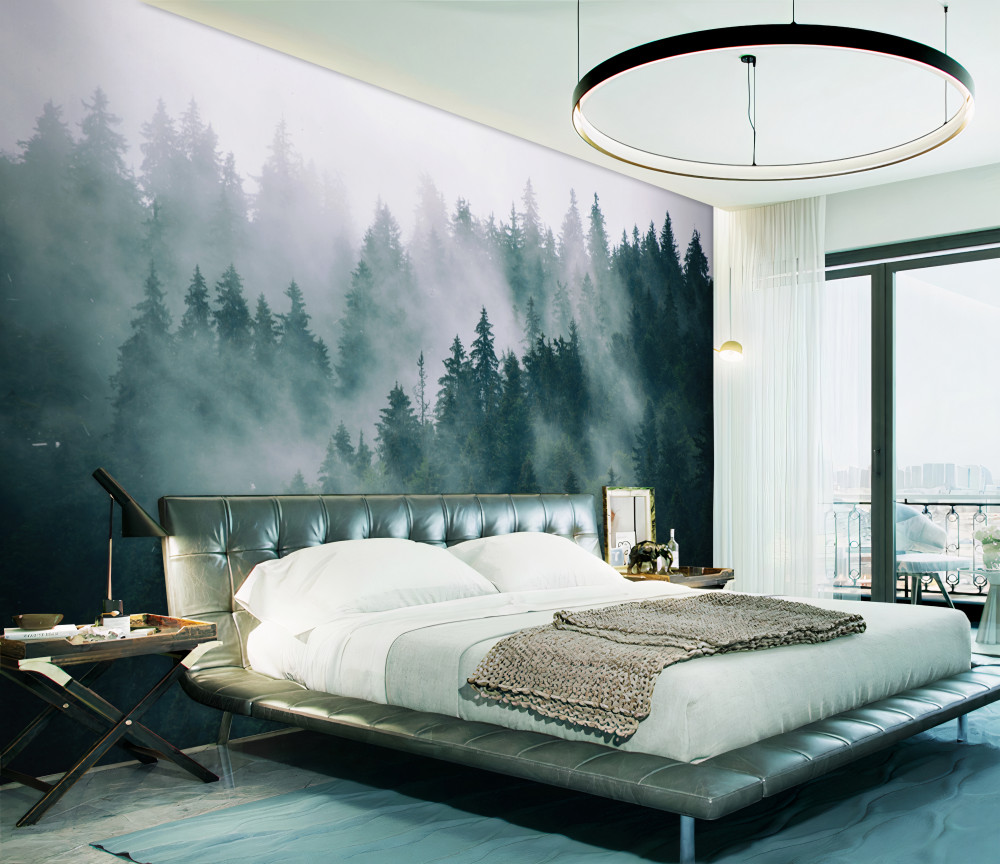 Tapet Fototapet dimineața într-o pădure de pini cețoasă (articol a92719 ) din categoria Fototapet Natura