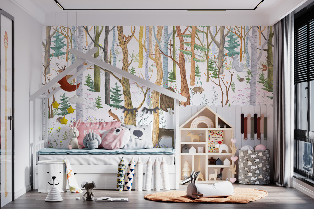 Tapet Fototapet animale care se plimbă prin pădure (articol a93914 ) din categoria Fototapet Pentru un băiat