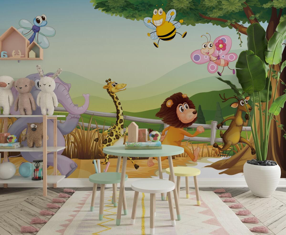 Tapet Fototapet Animale aleargă pe câmp (articol a98978 ) din categoria Fototapet pentru copii