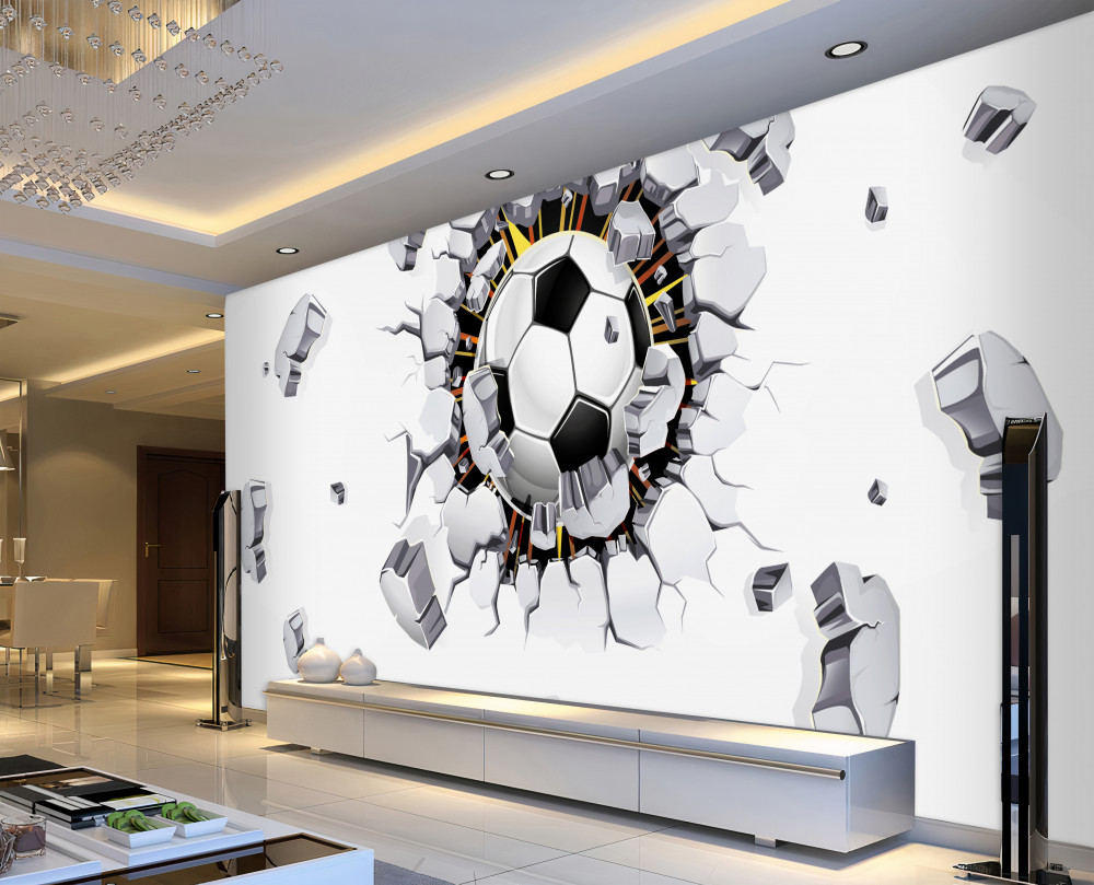 Tapet Fototapet mingea de fotbal a lovit peretele (articol a91563 ) din categoria Fototapet Fotbal
