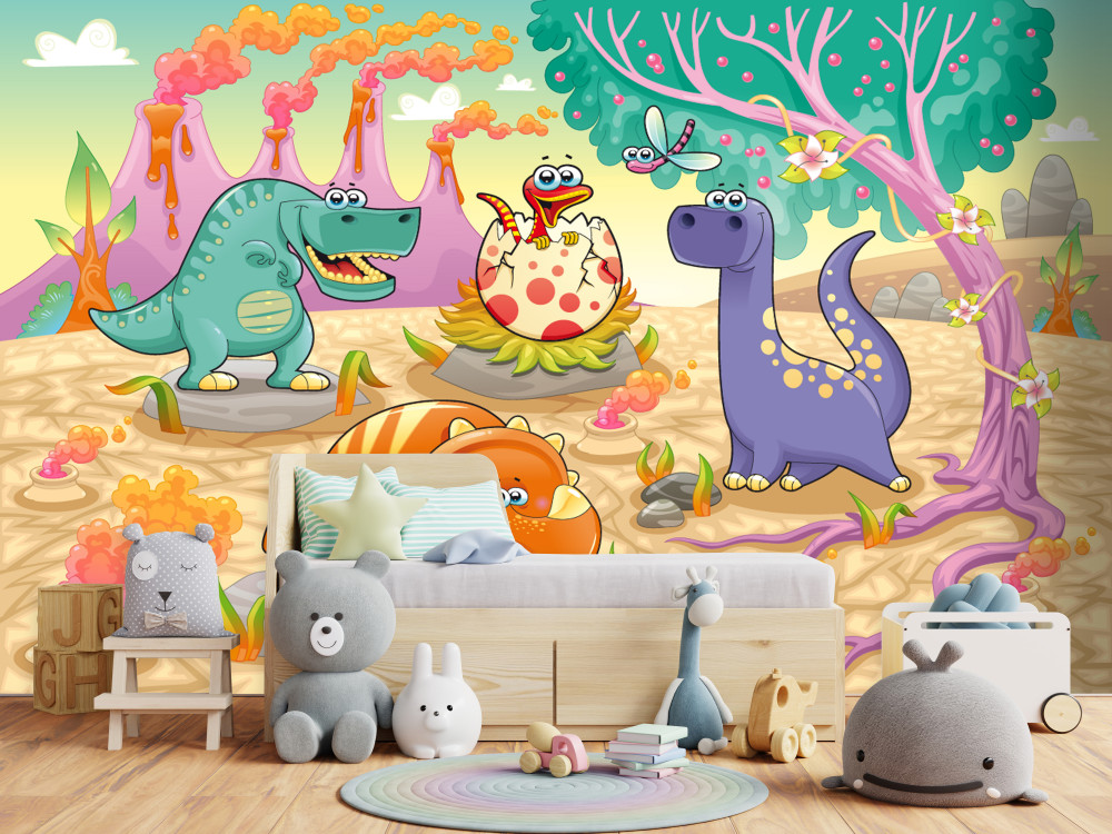 Fototapet dinozauri din desene animate în pădure