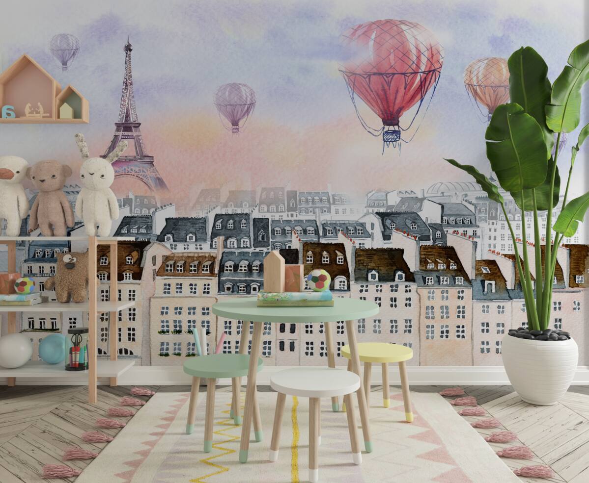 Tapet Fototapet Turnul Eiffel și casele din Paris (articol a98224 ) din categoria Fototapet pentru copii