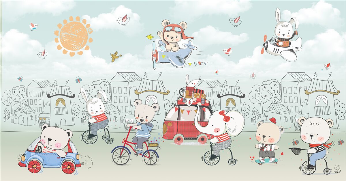 Tapet Fototapet Urșii merg la plimbare (articol a98191 ) din categoria Fototapet pentru copii