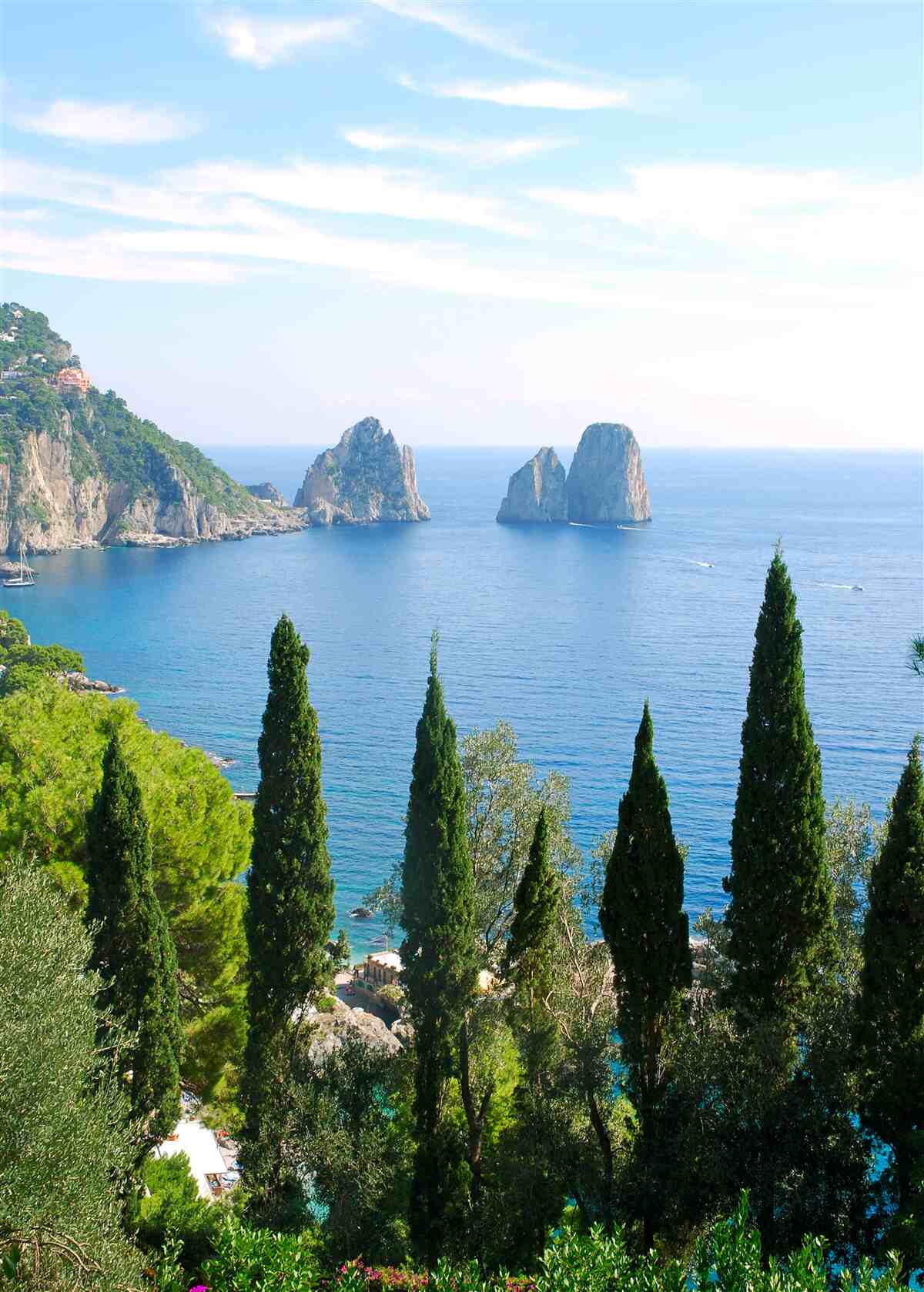 Tapet Fototapet coasta stâncoasă și chiparoși zvelți (articol a95435 ) din categoria Fototapet Popular